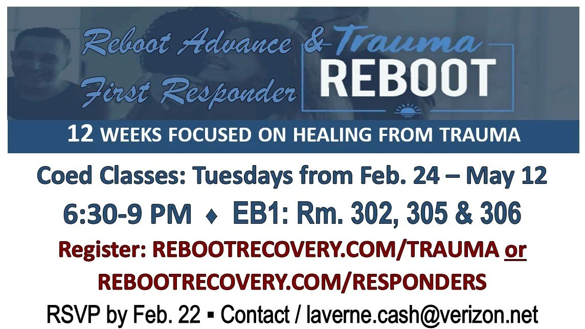 Feb 24 to May 12 Advance, 1st Responder & Trauma Reboot Classes Tue, Feb 24, 2026 6:30 PM 18:30 Tue, May 12, 2026 9:00 PM 21:00 Oak Grove Baptist Church (map) Google Calendar ICS Register - Reboot Advance & Trauma Reboot Register - 1st Responders View Event →